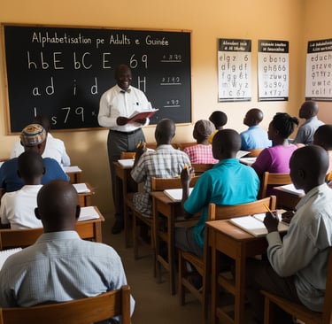 En Guinée, l'alphabétisation des adultes revêt une importance cruciale pour le développement économique et social du pays. Pour répondre à ce défi, plusieurs programmes gouvernementaux et initiatives des organisations non gouvernementales (ONG) ont été mis en place. Ces efforts visent à améliorer le taux d'alphabétisation et à offrir aux adultes les compétences nécessaires pour s'intégrer pleinement dans la société.